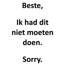 'Onze samenleving normaliseert seksueel geweld op allerlei manieren en dat moet veranderen', zegt Marieke. 'Dus toen na het plaatsen van de advertentie nog wat geld over was, hebben we een Boomerang Card gemaakt met de tekst: Beste, Ik had dit niet moeten doen. Sorry. We hopen dat de actie helpt om de verantwoordelijkheid te verplaatsen van het slachtoffer naar de dader. De kaart moet vooral jongeren stimuleren om kritisch naar hun eigen gedrag te kijken en de eerste stap te zetten als ze te ver zijn gegaan of daaraan twijfelen.'
